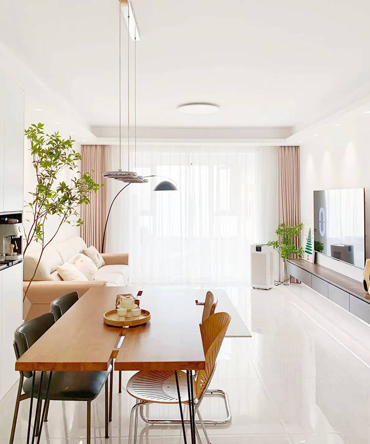 3、地面选购白色瓷砖通铺,真的炒鸡显大!